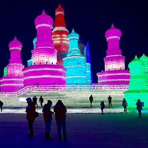 Harbin's winter temperatures range from -15°C to -25°C, making it an ideal location for the Ice Festival, which attracts many tourists each year to view ice and snow sculptures. Located in Northeast China near Russia, Harbin has numerous Russian-style buildings and offers delicious Russian cuisine, providing a rich foreign atmosphere.